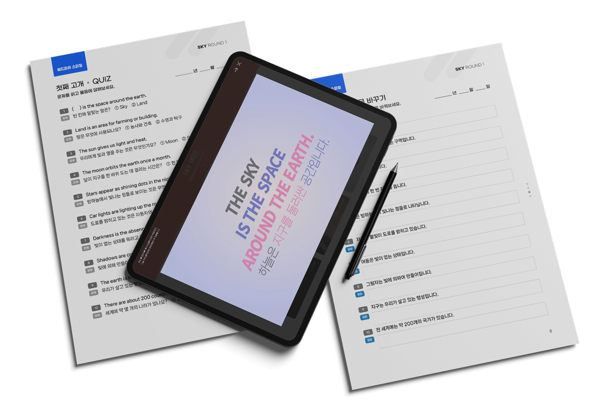 뮤직비디오 40개, 노래배우기 320개로 스트레스 없이 노래로 배우는 영단어. 워드파이는 아이들의 호기심을 자극하는 노래와 게임으로 구성이 되어 있습니다. 귀에 감기는 멜로디와 중독성 있는 리듬, 상상력을 자극하는 이미지와 고품격 영상, 하나로 통합된 학습과 도전 의욕을 자극하는 퀴즈 시스템이 상호작용하면서 자기도 모르게 공부가 됩니다.